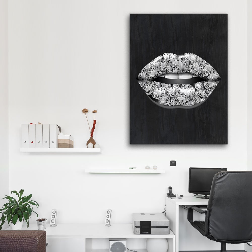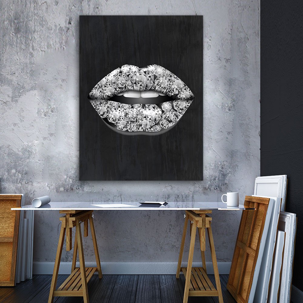 Diamond Lips Wall Art delivers luxury and shine with sparkling diamond elements that elevate any modern or fashion focused space.