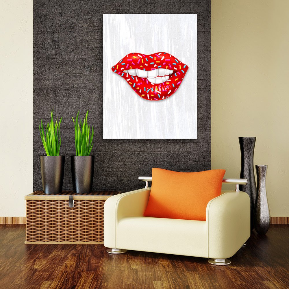 Donut Lips Wall Art brings humor and creativity into your space with a quirky lips and donut inspired pop art concept.