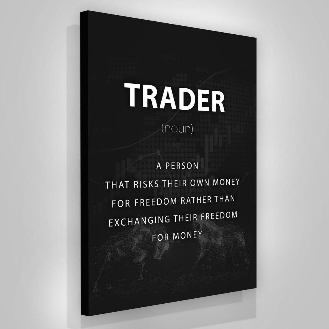 Define your mindset with this Trader Definition Wall Art. A bold statement piece that reflects freedom, risk, and independence. Perfect for trading rooms and home offices.